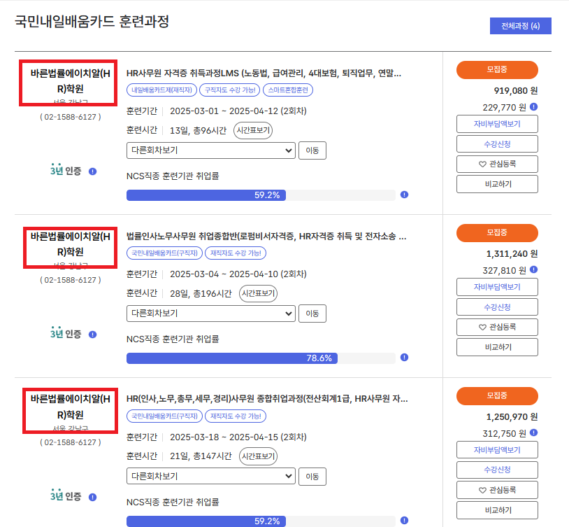 바른법률HR학원에 방문하셔서 자비부담금액 결제 완료 하시면 수강신청이 완료됩니다.