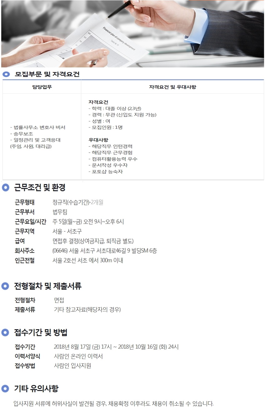 해랑 법률사무소 전문비서/법무대리 경력무관 채용 페이지 정보 작성자 에스앤에스 댓글 0건 조회 548회 작성일 18-10-12 00:00 목록 본문 해랑 법률사무소 전문비서/법무대리 경력무관 채용 관련링크 http://www.saramin.co.kr/zf_user/jobs/relay/view?view_type=search&rec_… 471회 연결 이전글법무법인(유한) 바른 송무지원팀 경력 및 신입사원 모집 18.10.12 다음글고려(顧慮)법률사무소 직원 채용 공고 18.10.12 댓글 0 댓글목록 등록된 댓글이 없습니다.