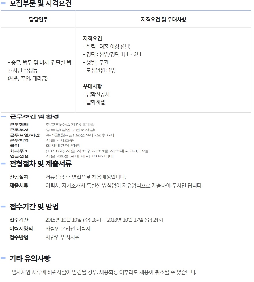 법무법인 조율과 함께 성장할 진취적인 사원모집 페이지 정보 작성자 에스앤에스 댓글 0건 조회 576회 작성일 18-10-12 00:00 목록 본문 법무법인 조율과 함께 성장할 진취적인 사원모집 관련링크 http://www.saramin.co.kr/zf_user/jobs/relay/view?view_type=search&rec_… 453회 연결 이전글법무법인 태성 송무직원 채용 19.01.01 다음글법무법인(유한) 바른 송무지원팀 경력 및 신입사원 모집 18.10.12 댓글 0 댓글목록 등록된 댓글이 없습니다.